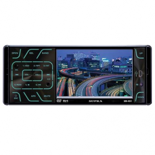 SDD-4201 - CD/DVD - автомагнитола с выходом AUX на передней панели. Краткие технические характеристики: 4x50 Вт, цветной сенсорный дисплей, усилитель, эквалайзер, FM/AM радио, CD-R, CD-RW, DVD-R, DVD-RW, MP3, WMA, MPEG4, JPEG, USB, слот для карт памяти SD/MMC, пульт ДУ.